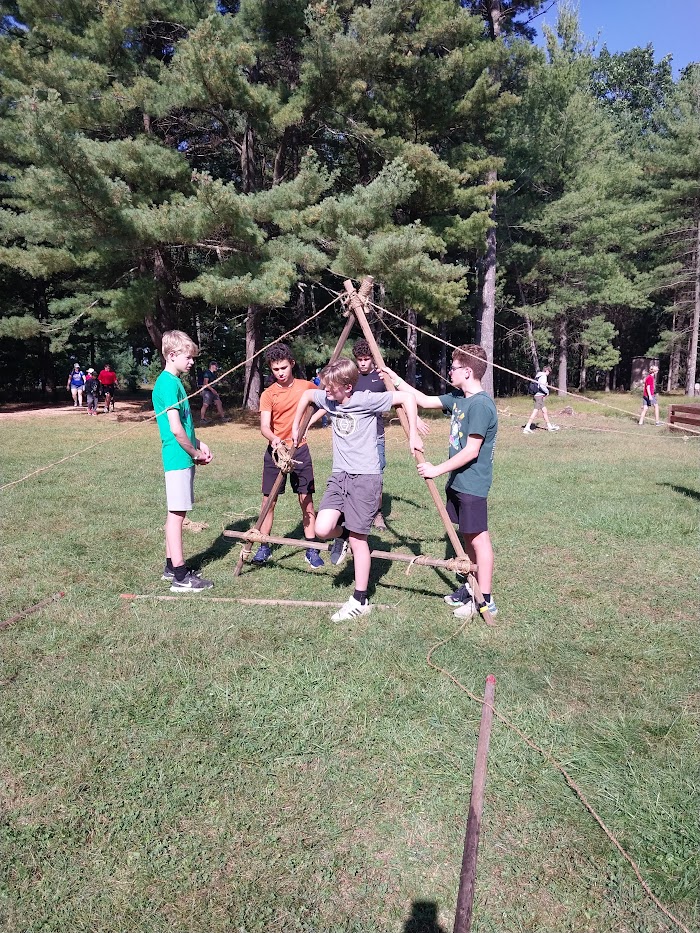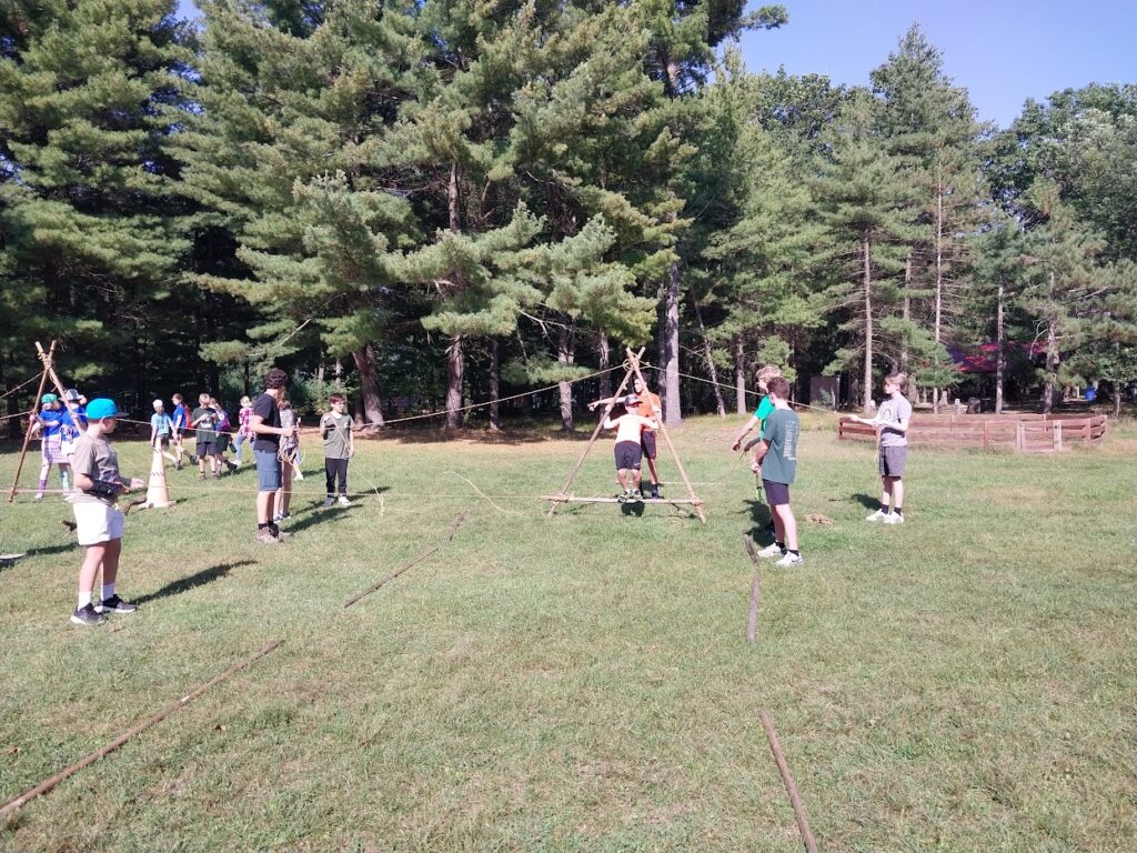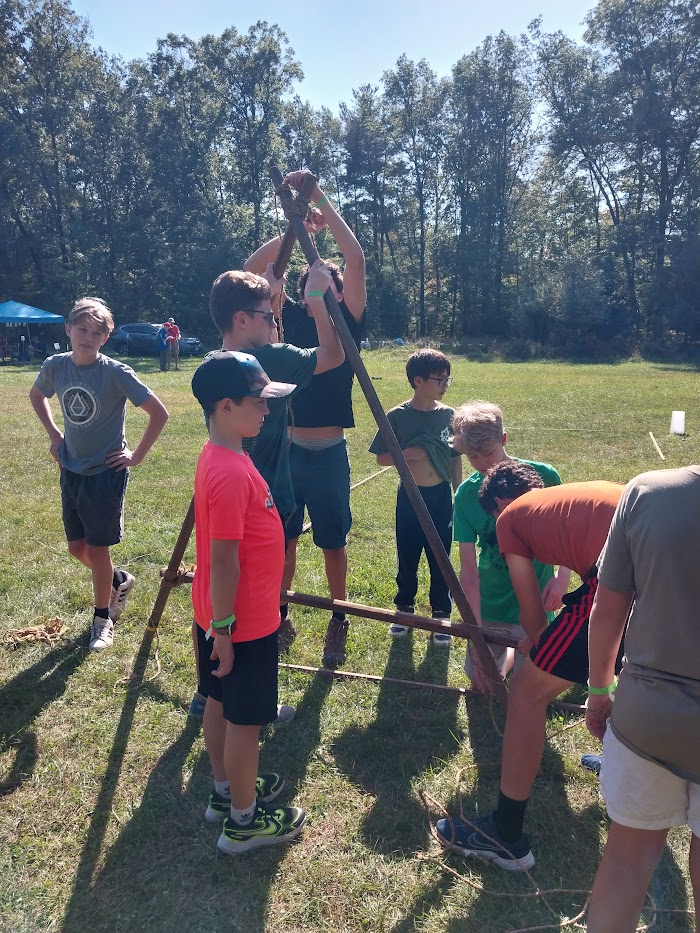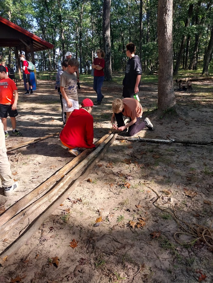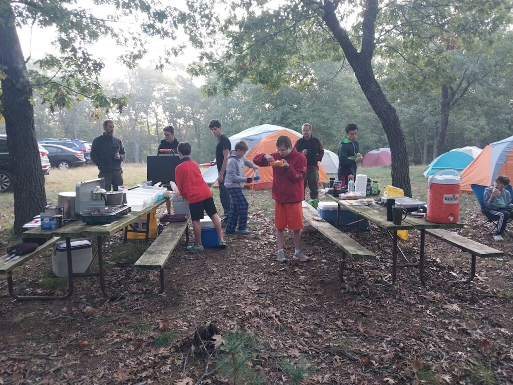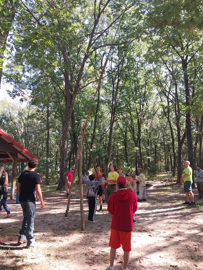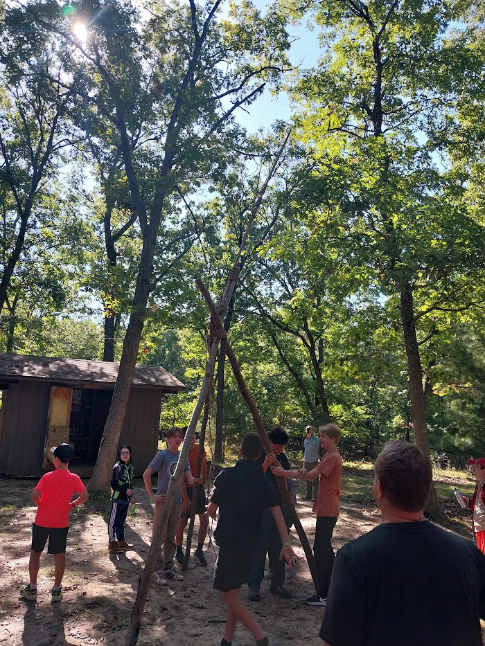 The theme for the Camporee was Back to the Glacier, a play on Back to the Future. Scouts worked on pioneering skills by making A-frame walkers. There was also a competition to see who could erect the tallest structure. Troop 122 made a free standing “Lightning Rod” structure 35′ tall! There also was a fire-starting competition, map & compass activity, first aid practice, obstacle course relay, BB gun shooting. Troop 122 won the 1980’s trivia competition. Saturday evening, scouts all gathered in Fellowship hall for movie night and watched Back to the Future. Sunday morning after cleaning up the campsite, they went to have brunch at the Paul Bunyan restaurant in Lake Delton.